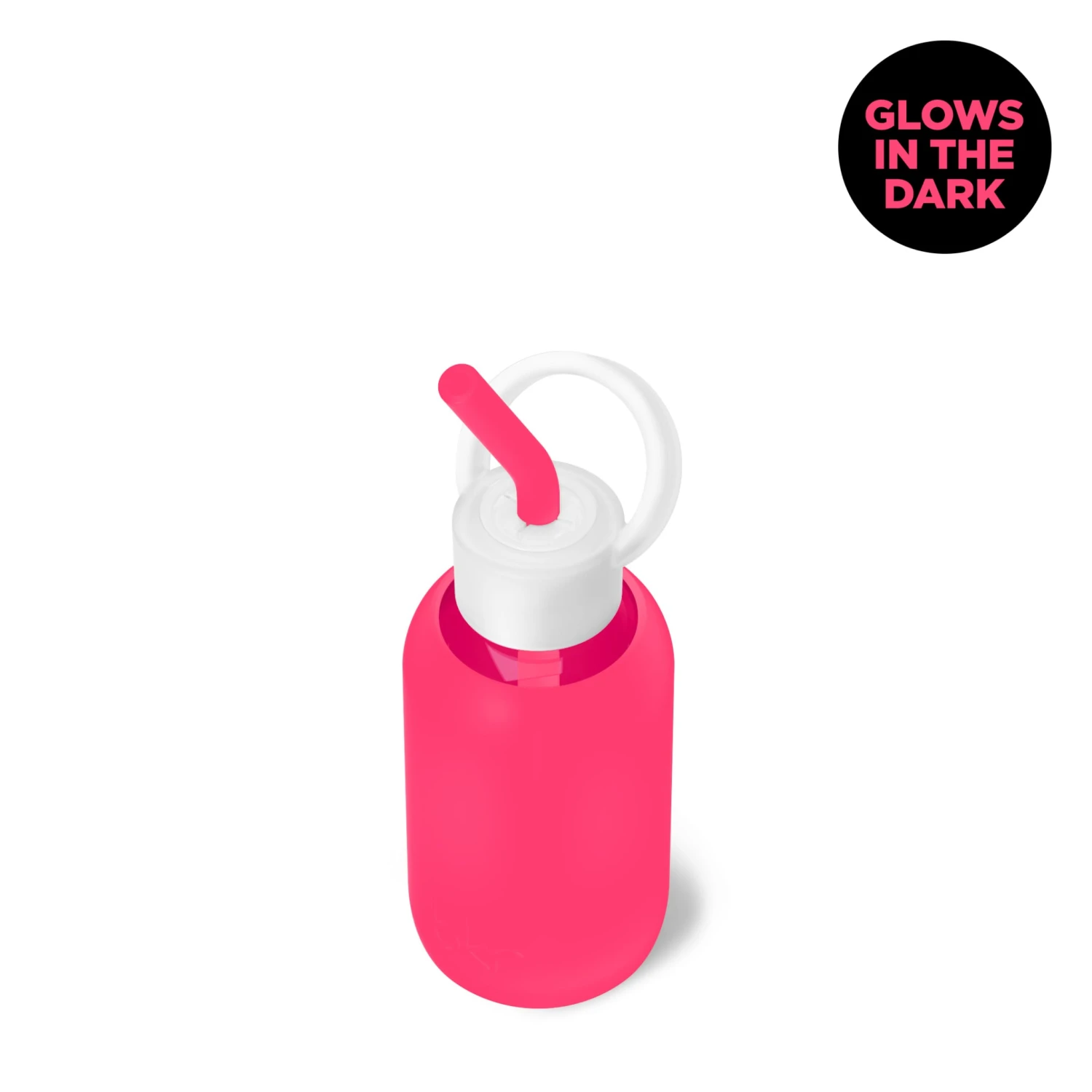 This size is called the Teeny. The littlest gulp, your love for this whole glass of water will surprise you the most. This reusable glass water bottle fits in your smallest bags and is ready to refill at every water station and never weigh you down. This 250ml (8oz) water bottle is perfect for day-long city treks, clipping onto waist bags, slipping into fanny packs, holding a cocktail, mixing in wellness tonics, and for your little ones. Â