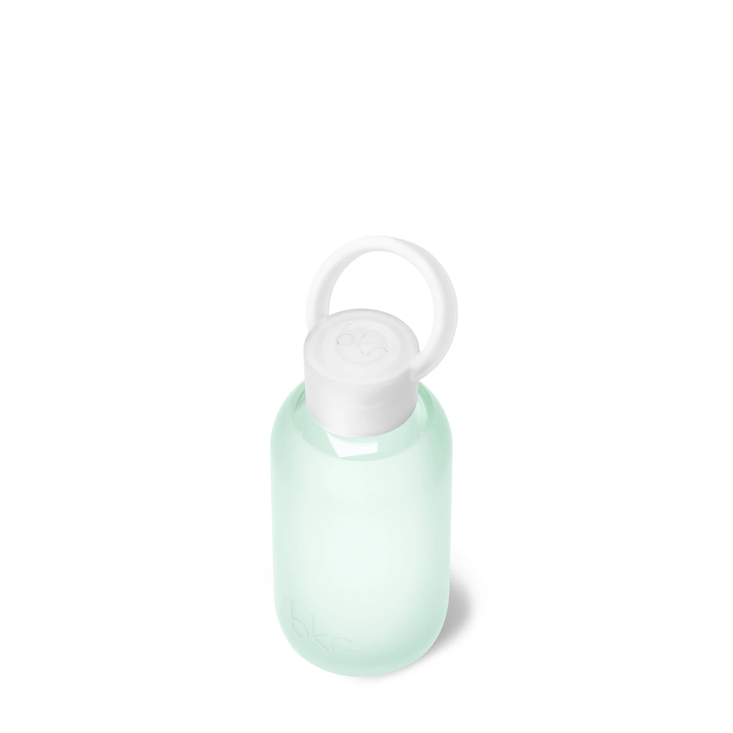 This size is called the Teeny. The littlest gulp, your love for this whole glass of water will surprise you the most. This reusable glass water bottle fits in your smallest bags and is ready to refill at every water station and never weigh you down. This 250ml (8oz) water bottle is perfect for day-long city treks, clipping onto waist bags, slipping into fanny packs, holding a cocktail, mixing in wellness tonics, and for your little ones.