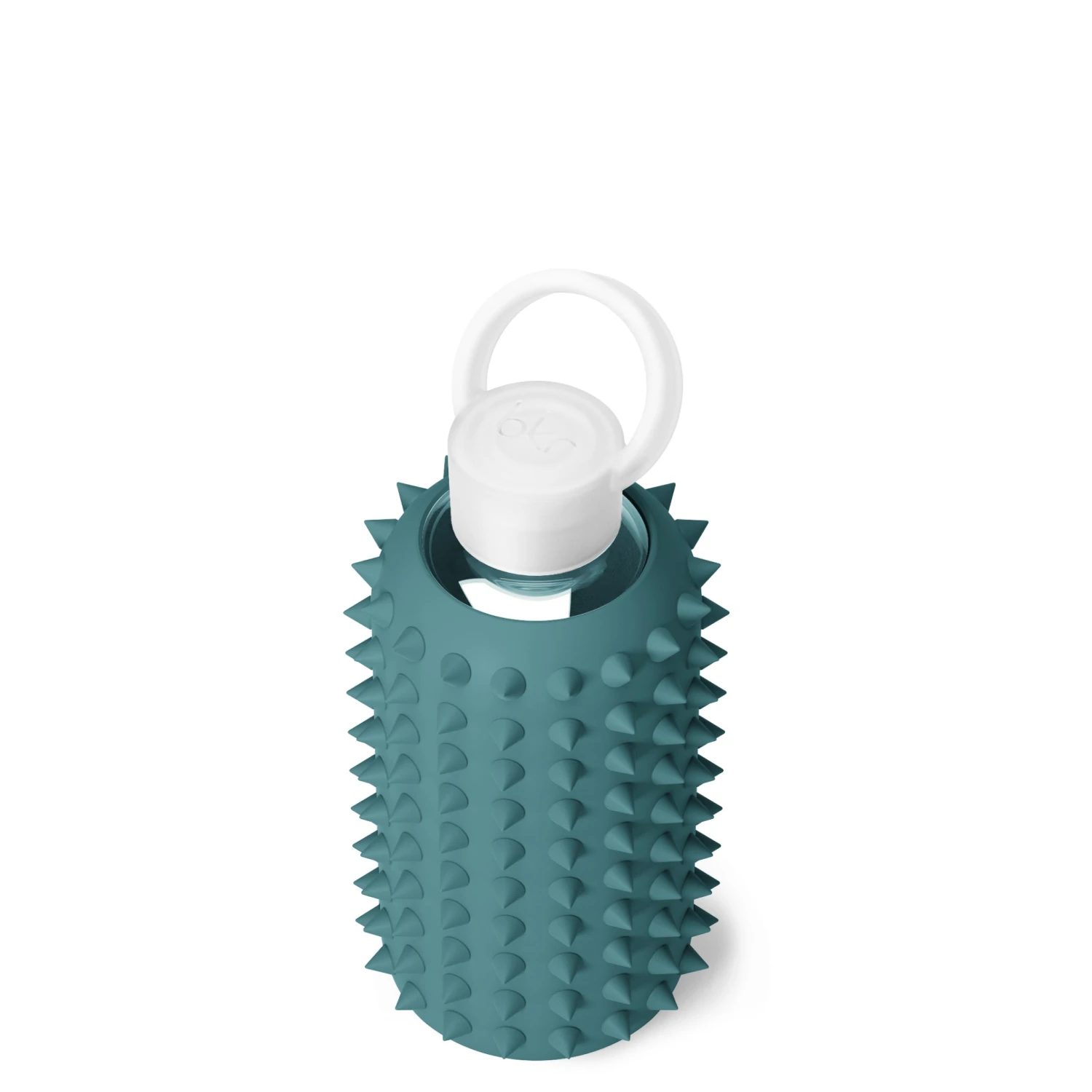 This is called the Little Spiked bkr. Our original glass water bottle with a soft spiked silicone sleeve inspired by a love affair with everything spiked at Barneys NY. Our little spiked water bottles are not only très chic, they also provide life-changing grip for people with mobility issues and are better than a fidget spinner for anxiety. We’ve heard they’ve made a huge difference in the lives of many, from cool grandpas to people with rheumatoid arthritis and mild cerebral palsy. The spikes are both firm and soft and feel great in your hand. The Little holds up to 500ml (16 oz) and fits in your tote bags, your backpack, your travels, and your life for everyday drinking.Â