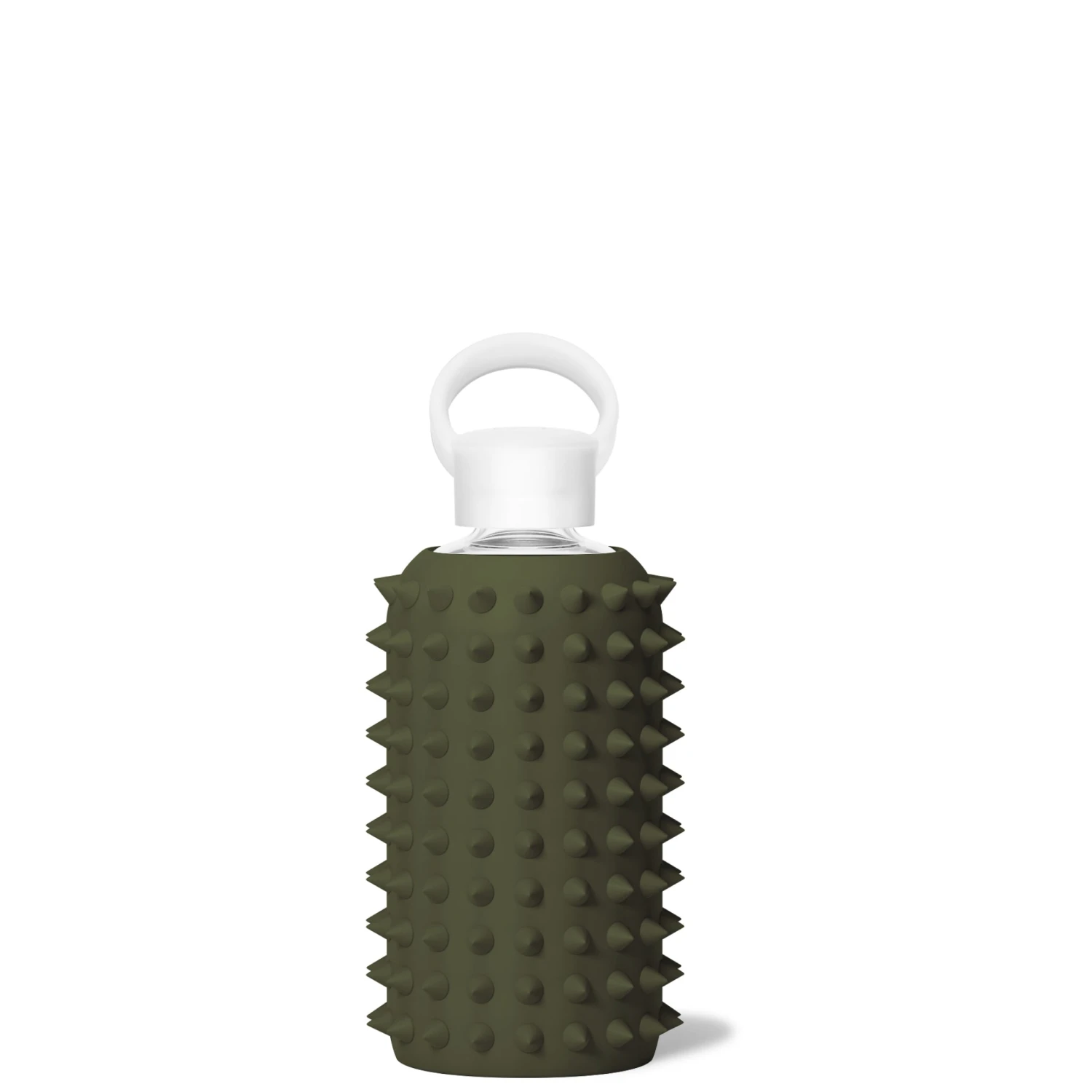 This is called the Little Spiked bkr. Our original glass water bottle with a soft spiked silicone sleeve inspired by a love affair with everything spiked at Barneys NY. Our little spiked water bottles are not only très chic, they also provide life-changing grip for people with mobility issues and are better than a fidget spinner for anxiety. We’ve heard they’ve made a huge difference in the lives of many, from cool grandpas to people with rheumatoid arthritis and mild cerebral palsy. The spikes are both firm and soft and feel great in your hand. The Little holds up to 500ml (16 oz) and fits in your tote bags, your backpack, your travels, and your life for everyday drinking.Â