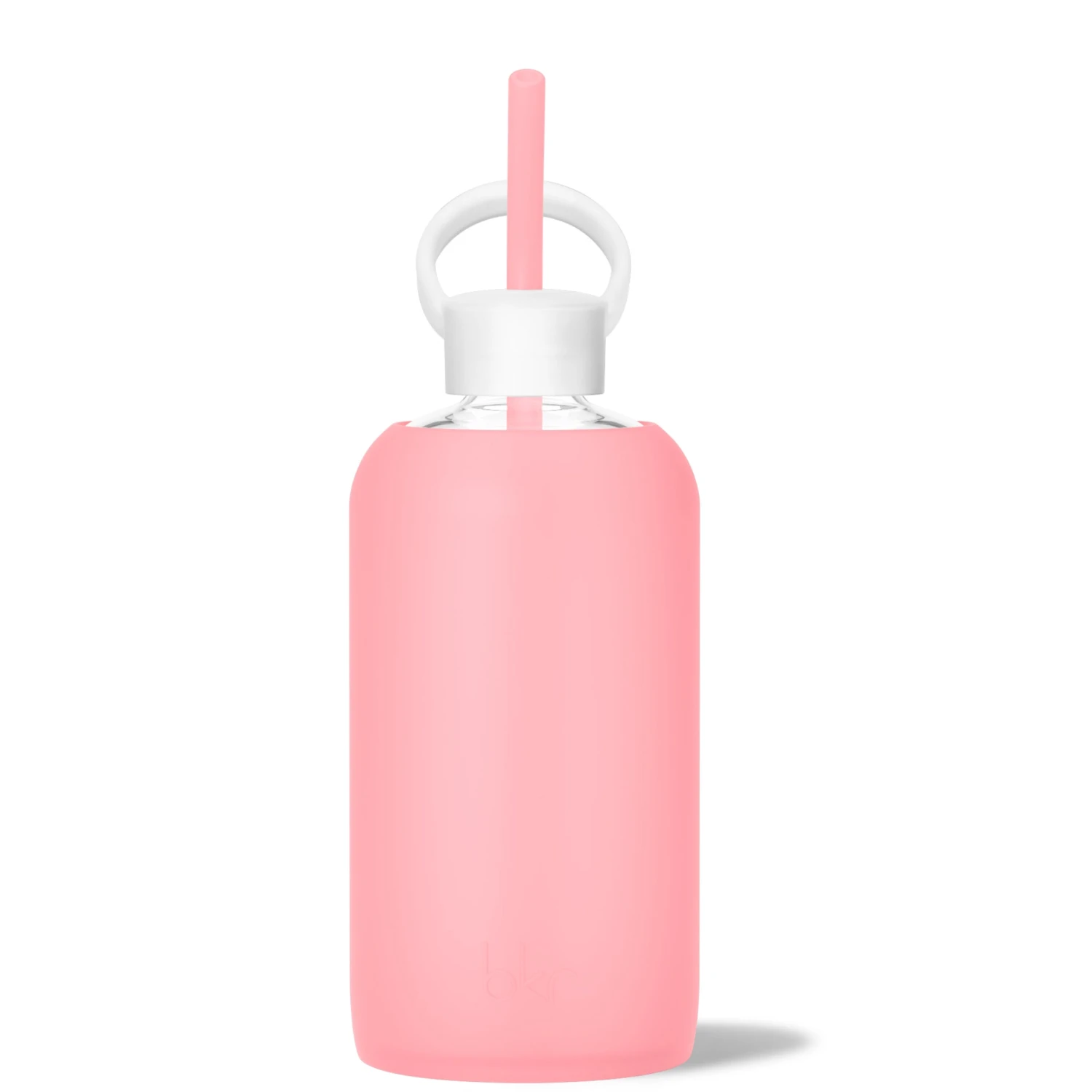 This size is called the Big. The mother of all reusable glass water bottles, this oversized beauty is the most serious hydration of your life and will help get that hydrated glow back into your cheeks. Not little, not light, but with a pretty and protective smooth silicone sleeve. This 1L (32 oz) water bottle is exactly right for yoga, working out, on your bedside table and at your desk.Â