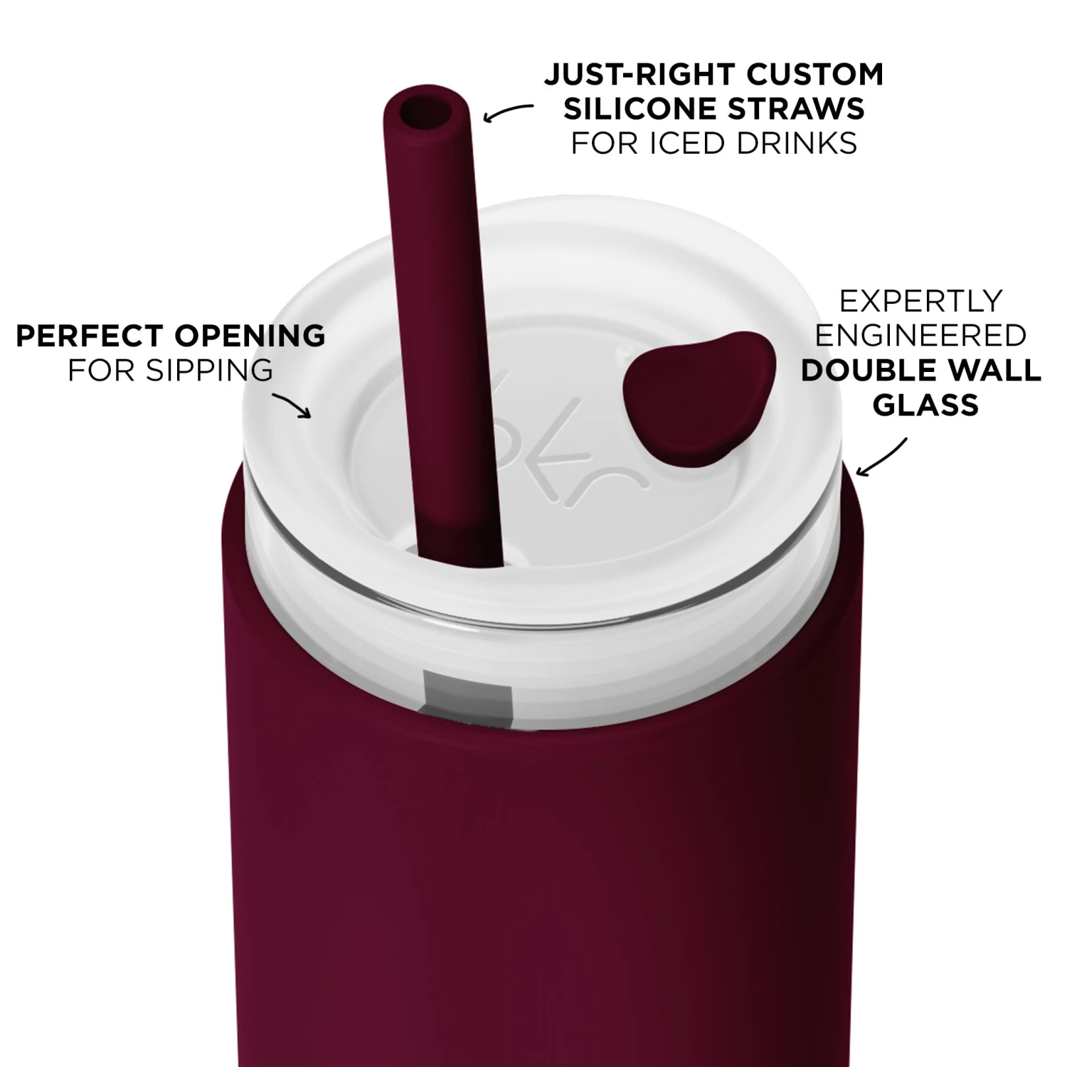 We’ve combined our exquisite and elevated cup with our perfect cup straws. True love. 100% dishwasher safe, microwave safe with the cap off, grippy pretty silicone, clean, clear, never looks scratched, peeling or rusty, sets down silently, never imparts weird, metallic taste or last-drink’s flavor. Keeps cool things cool + hot things hot.