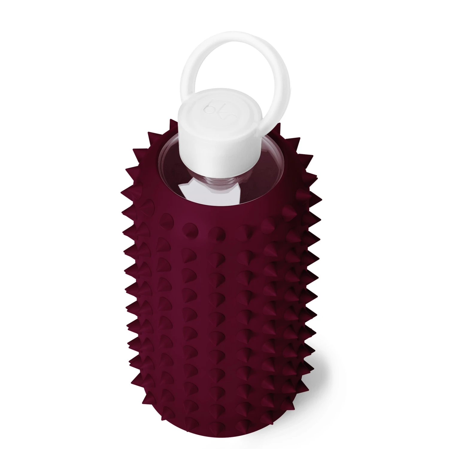 This is called the Big Spiked bkr. The mother of all reusable glass water bottles, this oversized beauty is the most serious hydration of your life and comes with our soft spiked silicone sleeve. Inspired by a love affair with everything spiked at Barneys NY, our spiked water bottles are not only très chic, they also provide the most amazing grip in the world and are better than a fidget spinner for anxiety. People have reported the spikes are also helpful with pressure points and for attention issues. They are both firm and soft and feel great in your hand. This 1L (32oz) water bottle is exactly right for yoga, working out, on your bedside table, and at your desk.